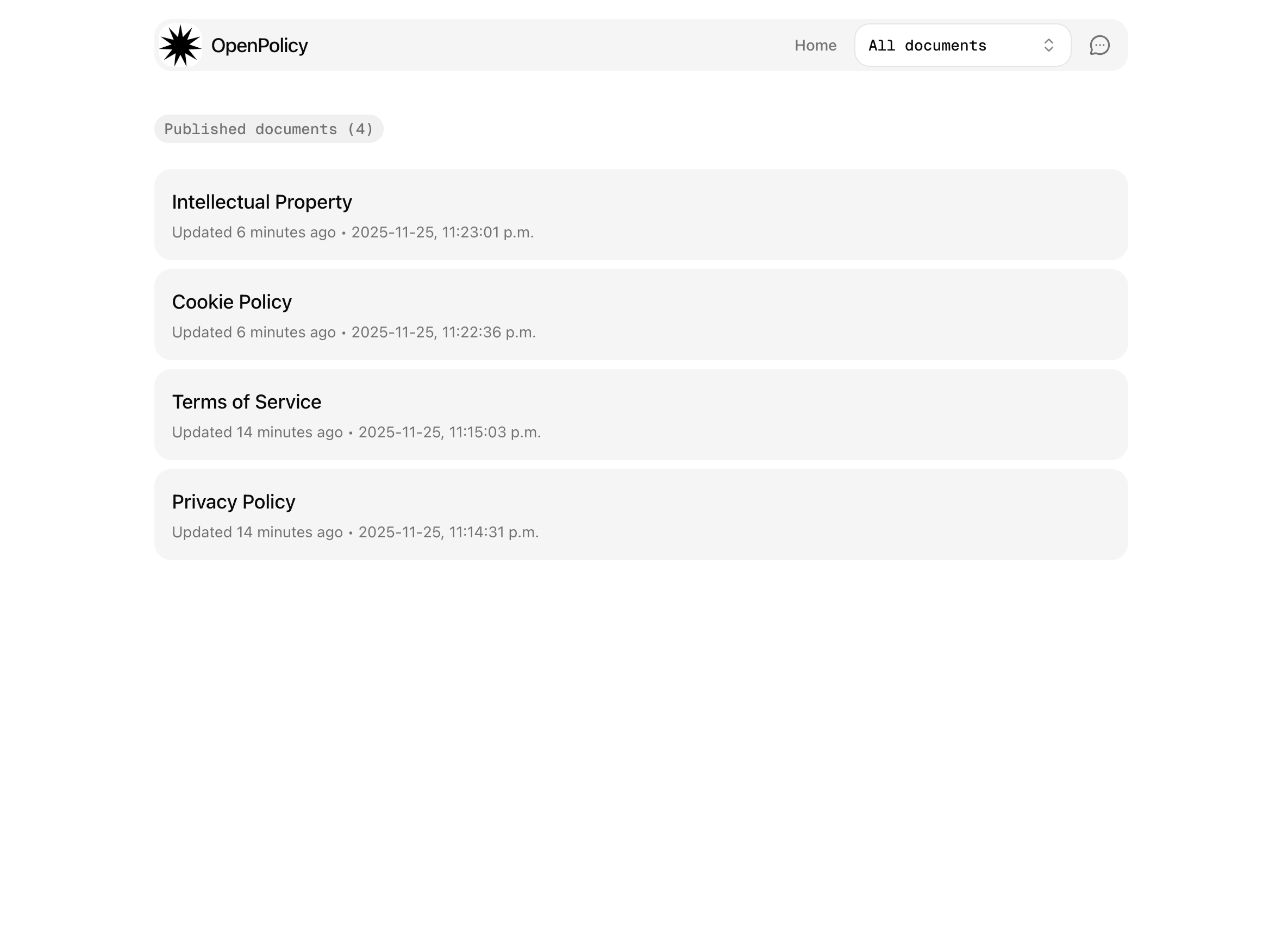 From guides to onboarding documents, OpenPolicy helps you manage all your documents in one place.